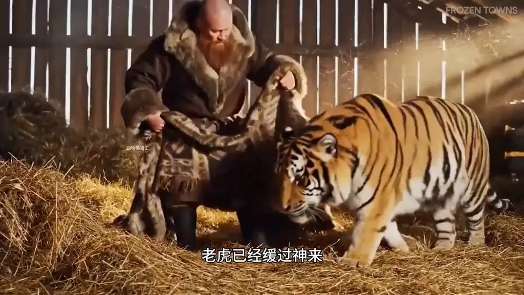 老虎突然站了起来,它正在和大爷做最后的道别,它已经把大爷当成了自己的救命恩人。最终老虎依依不舍的离开了,看着它远去的背影,大爷显得非常失落,他不知道自己的行为到底是对还是错。