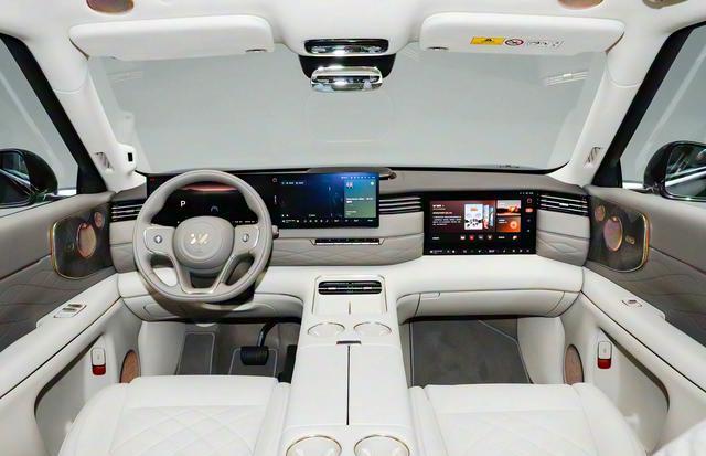 进入智己LS9的车内会有一种焕然一新的感觉,整体的局部没有像其它新能源车型那样千篇一律,而是采用全新的设计风格,全液晶仪表和中控屏幕连接在一起,并且向驾驶员一侧靠拢,方便开车的时候观看信息,在副驾驶前方则是单独设计了一块娱乐屏幕,使用的时候不会分散驾驶员的注意力,设计的比较合理。